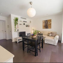 It has a living room – kitchen, a double room and two bathrooms. It is located at the third floor of a new building with elevator.